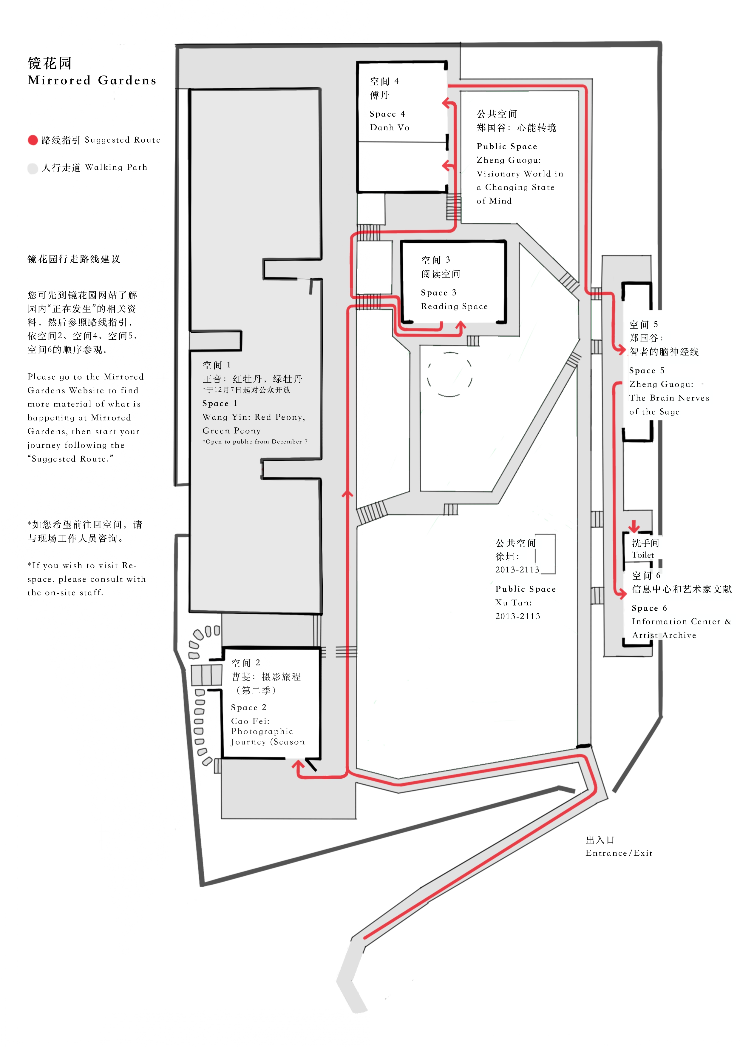 作为一个当代艺术空间,镜花园希望提供给来访者一个专注于艺术感受的环境。在此,想与您分享一些来访之前的温馨提示: